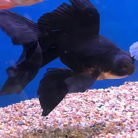 Overview: The Telescope Butterfly Moor Goldfish is a stunning variety of fancy goldfish known for its large, bulging eyes and elegant, flowing fins. Their distinctive black color, which may fade to orange as they age, along with their unique fin structure, makes them a captivating addition to any freshwater aquarium.