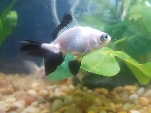 Overview: The Telescope Butterfly Moor Goldfish is a stunning variety of fancy goldfish known for its large, bulging eyes and elegant, flowing fins. Their distinctive black color, which may fade to orange as they age, along with their unique fin structure, makes them a captivating addition to any freshwater aquarium.