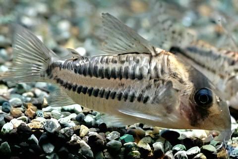 Overview: The Corydoras Ornatus is a captivating and peaceful freshwater fish, known for its striking black and yellow patterned body. This small-sized catfish reaches up to 2.5 inches in length, making it an ideal addition to community tanks. With its bottom-dwelling nature, it actively scavenges the substrate, contributing to a cleaner and healthier aquarium environment.