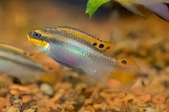 A pair of these exquisite little cichlids are suitable for community aquariums measuring 90cm or longer. Larger groups should be given much more territory. The substrate should consist of natural coloured sand or fine gravel, and dark shady areas should be provided with plenty of plants, bogwood, and caves. Java moss covered coconut shells or clean new flowerpots are particular favourite hideaways, and a pair is likely to choose such a location as a spawning site. Excellent water quality should be maintained at all times, and boisterous tankmates are not advised. If kept in cramped quarters, breeding pairs will become quite aggressive towards their tankmates, so adequate space must be provided.