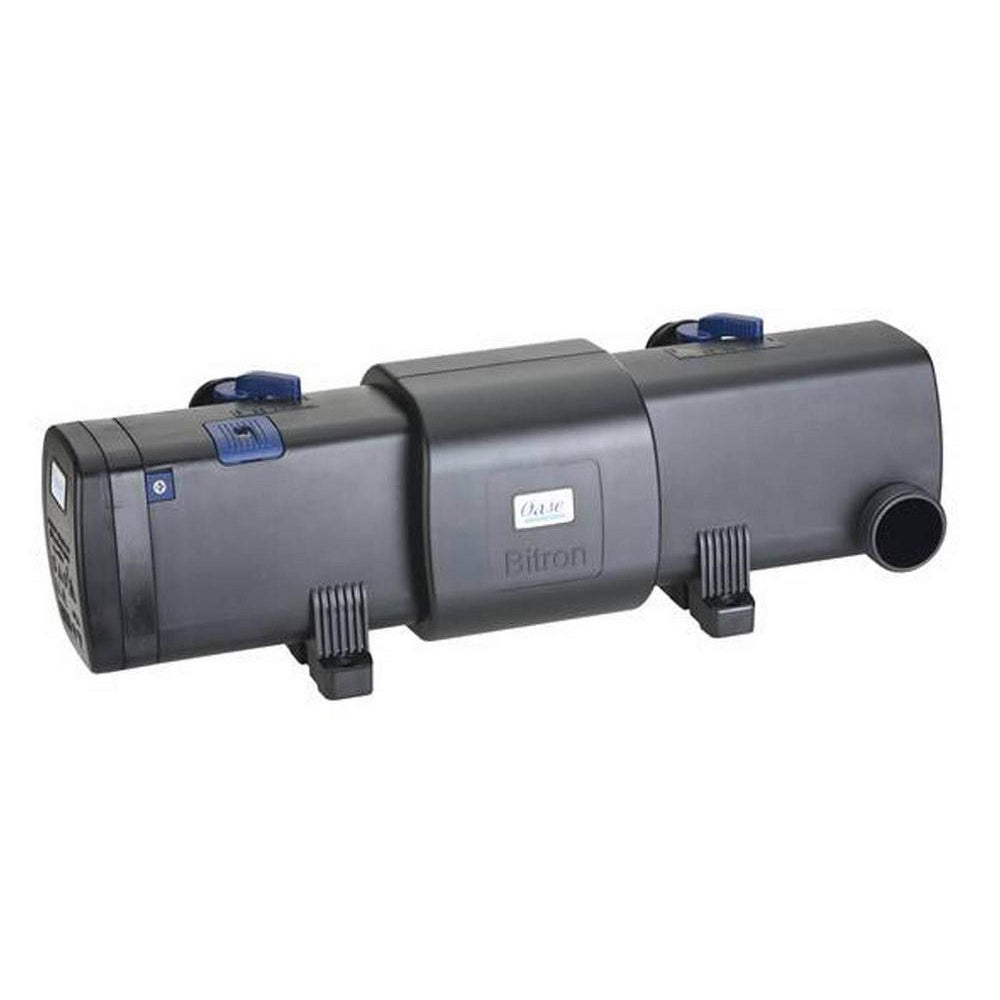 ?The OASE Bitron C 110 W UVC clarifier removes floating algae and reduces harmful bacteria for healthy and clear water.?An automatic cleaning system ensures fully effective UVC radiation at all times.?A control window provides additional functional reliability.?With a power consumption of 110 watts, 12,000 l / h can flow past the UVC tube without a bypass.?The flow can be individually adjusted and regulated.?The OASE Bitron C 110 W UVC clarifier is available complete with a universal stepped hose nozzle from ? “to 2”.?The cable is 5 m long.?A flow nozzle optimizes the flow to the cleaning rotor.?The nominal voltage is 230 V / 50 Hz. Ideal for connection to ProfiClear, BioTec 30 and BioTec ScreenMatic 36. You receive a 2-year guarantee.