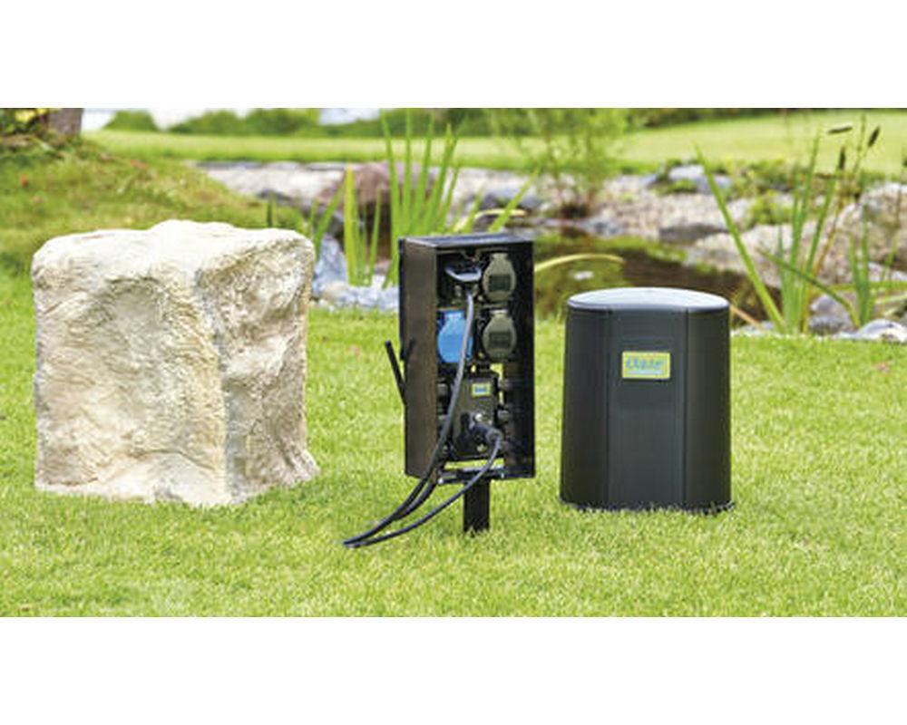 The revolution in garden tool control – the heart of the OASE Control System.?From now on, you can use your smartphone or tablet (iOS or Android) to conveniently control and regulate your gardening equipment in an app via WiFi.?As soon as interesting updates are available, there is automatic information about the free download.?The 4 sockets can be controlled over 24 hours using a timer.?The device can now also be integrated into the home network via a router and also easily networked with the OASE Cloud.?In this way, the connected devices can also be monitored and controlled while on the go.?The connection and bi-directional communication of OASE end devices with OASE Control technology is also possible.?In addition, a further 10 OASE devices (radio-controlled or with an OASE Control connection) can be controlled via the app.?Including splash protection.?A ground spike for secure anchoring is included in the scope of delivery.