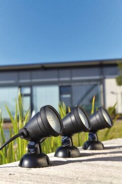 The LED underwater spotlight LunAqua Classic LED Set 3 is suitable for use above and under water (protection class IP 68) and sets pleasantly warm white light accents.?It is particularly energy-efficient with only 1 watt power consumption (multiple LED) and contains an adjustable head for flexible alignment of the beam angle.