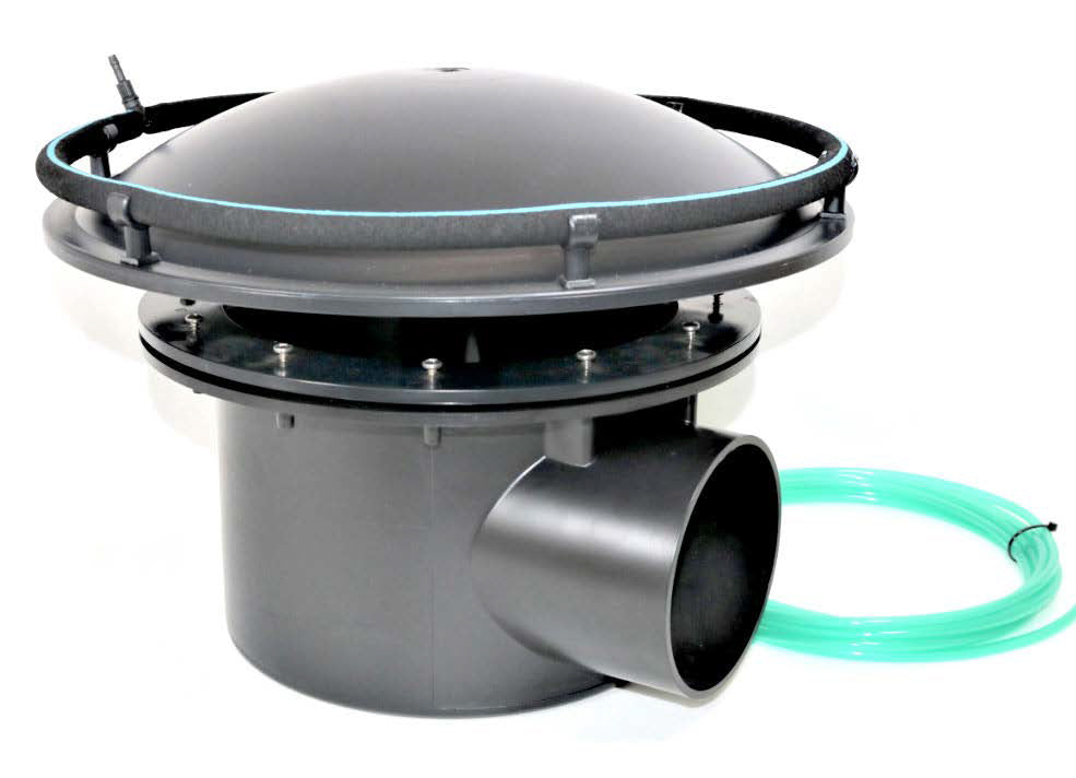 This design of Bottom drain features an aerated ring; the dome has a ring of perforated hose that sits neatly on top.