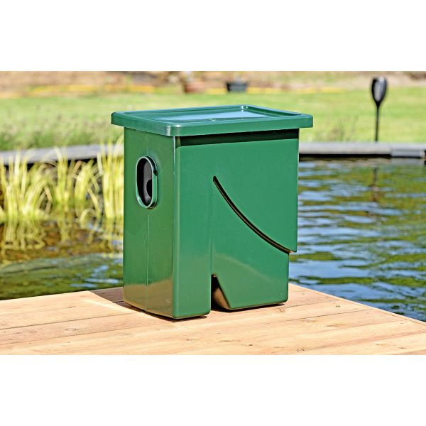 Very easy to use: a dirty water pond pump is connected directly to the CompactSieve input. The water flows through the sieve which removes all particle matter down to a size of 300 micron. The CompactSieve must always be installed above pond level. Now available in dark green and granite blue.