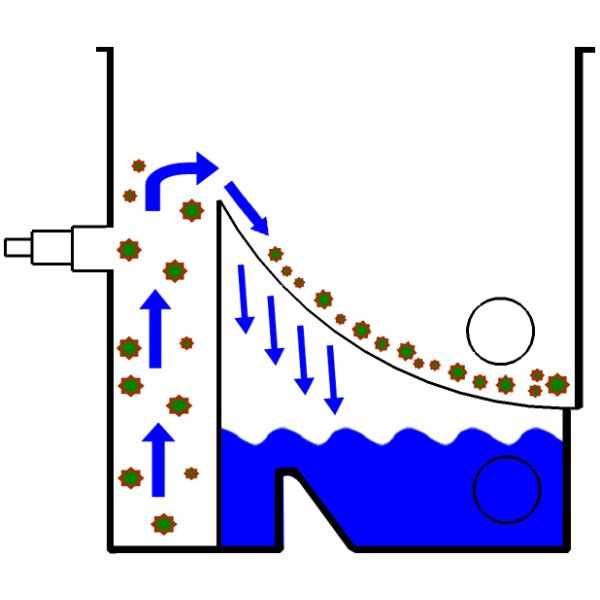 – As a particle remover directly next to the pond or to a waterfall/stream return to pond (A)