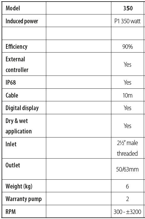 ?? Pump outlet connections: 50 mm (internal) / 63 mm (external)