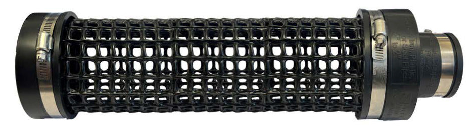 Super tough (110mm diameter) plastic grid is an ideal solution for pump pickups required for pre-filtering larger flow rates. The Pre-pump strainer has a 2?? flexible socket on the pump connection side.