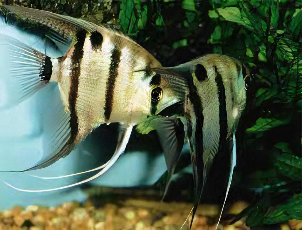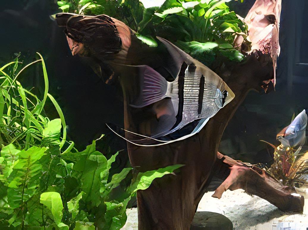 The Angelfish will thrive in a heavily planted aquarium with driftwood and/or rock formations and gentle water flow. It is not overly reclusive, but this fish strongly prefers the cover of plants and, due to its body shape, is not likely to seek refuge in rock caves and similar structures. The Angelfish is generally compatible with other peaceful fish as long as it has plenty of space. Territoriality is typically at its peak during spawning. Dwarf shrimp and other small, delicate invertebrates should not be kept with the Angelfish, but more durable, larger shrimp and snails could possibly make good tankmates in a large enough aquarium. If spawning is desired, tankmates of other species should be kept to a minimum or avoided altogether unless the aquarium is very spacious.