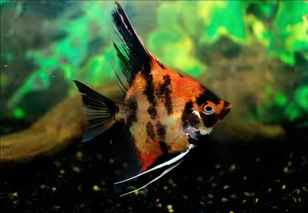 The Angelfish will thrive in a heavily planted aquarium with driftwood and/or rock formations and gentle water flow. It is not overly reclusive, but this fish strongly prefers the cover of plants and, due to its body shape, is not likely to seek refuge in rock caves and similar structures. The Angelfish is generally compatible with other peaceful fish as long as it has plenty of space. Territoriality is typically at its peak during spawning. Dwarf shrimp and other small, delicate invertebrates should not be kept with the Angelfish, but more durable, larger shrimp and snails could possibly make good tankmates in a large enough aquarium. If spawning is desired, tankmates of other species should be kept to a minimum or avoided altogether unless the aquarium is very spacious.
