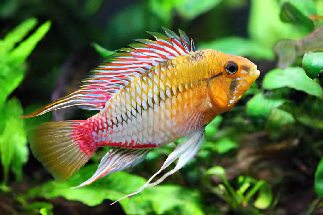 Feeding is simple for the unfussy Apistogramma Dwarf Cichlid. High-quality dry, frozen, and live meaty foods will all be readily accepted. Quality and variety are the keys to a diet that will ensure that this fish maintains optimal health and coloration.
