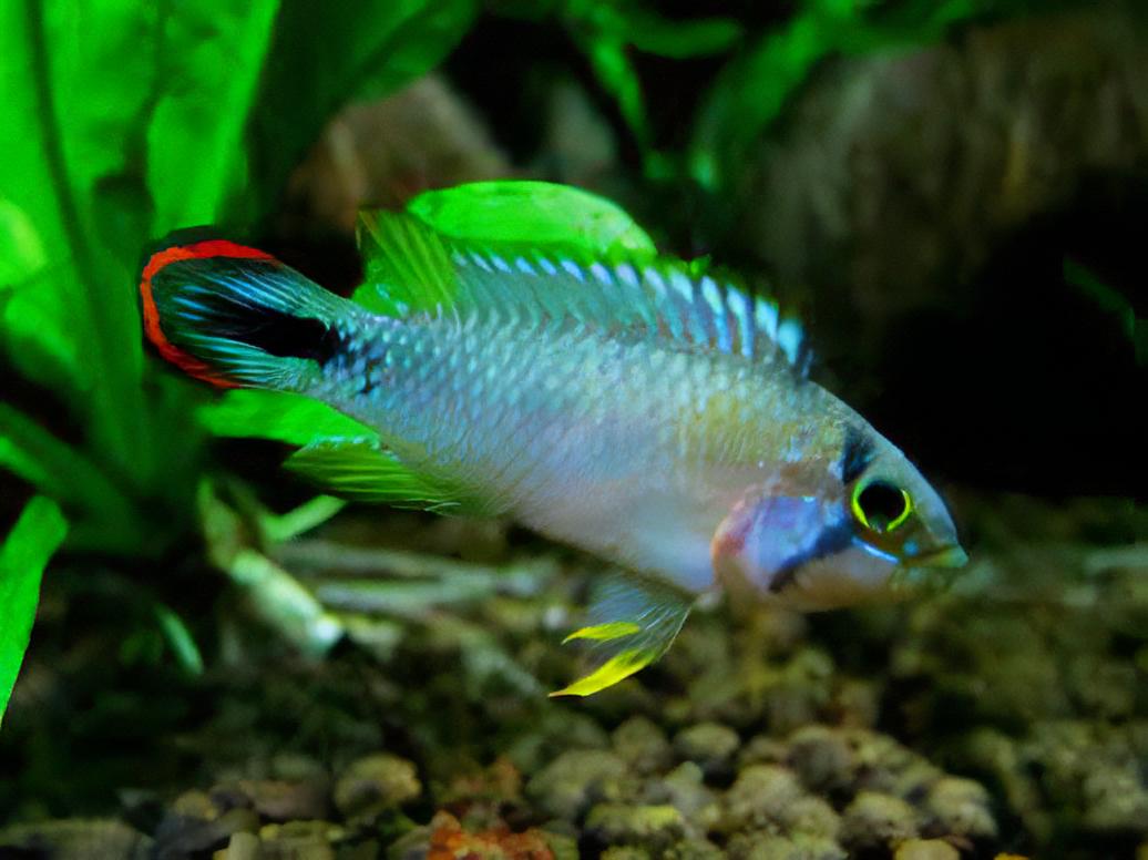The Apistogramma Dwarf Cichlid is an extremely colourful dwarf cichlid. Males are particularly colourful, displaying bright colours across the body and fins. As with most dwarf cichlids, females are less colourful, but still have an attractive appearance and plenty of personality.