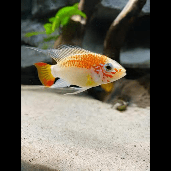 Origin: Native to the slow-moving rivers and streams of Colombia in South America, the Apistogramma Viejeta Gold thrives in areas with dense plant life and leaf litter, mimicking these environments in the aquarium will keep them happy and healthy.