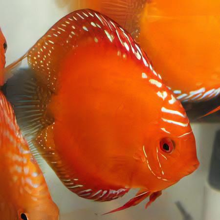 In nature, discus eat a considerable amount of plant material and detritus, but also forage along the bottom looking for worms and small crustaceans. They are omnivores and will thrive on Pellets and flake along side a treat of frozen and live foods. Some hobbyists and breeders feed their discus beef heart, and while it is not harmful, it is certainly not a natural food for discus. For best results, rotate their diet daily and feed only what they can consume in 2 to 3 minutes, once or twice a day.