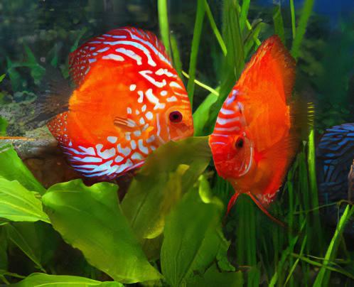 Captive bred discus will pair up and spawn relatively easily, but young, inexperienced parents may eat their eggs the first few times, particularly if other fish are present. After hatching, the young feed on heavy body mucus secreted by the parents for a few days until they begin to free-swim. Parents will transfer the young back and forth several times a day.