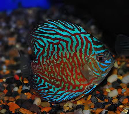 Overview: Discover the captivating beauty of the Tiger Turquoise Discus Cichlid, a stunning freshwater gem that adds an exotic touch to any aquarium. With its vibrant colors and distinctive patterns, this fish is a true showstopper, making it a prized choice for enthusiasts seeking elegance in their aquatic showcase.
