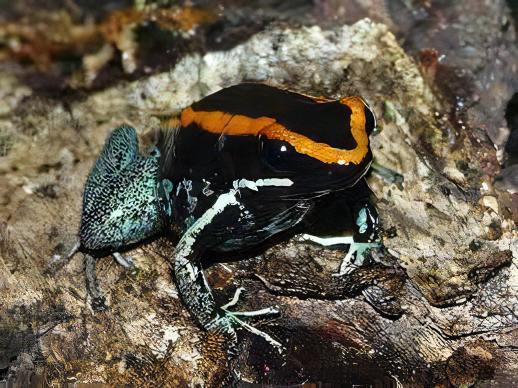 Overview: The Golfodulcean Poison Frog, known for its striking appearance and vibrant colors, is a captivating addition to any vivarium. Originating from the lush rainforests of Costa Rica and Panama, these small-sized frogs boast a mix of black and bright yellow stripes along their sleek bodies, making them an eye-catching display species.