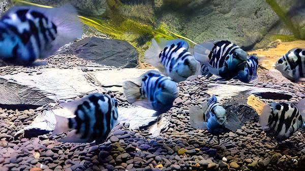 Originating from a blend of cichlid species, this hybrid showcases the beauty and charm of its lineage, displaying vibrant blue tiger stripes that command attention. Renowned for their inquisitive nature, these fish thrive in spacious tanks with ample decor for exploration and engagement.