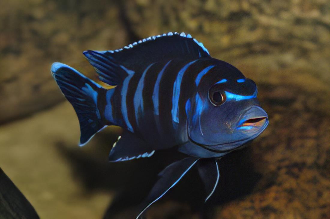 “Originating from the rocky shores of Lake Malawi in Africa, the Pseudotropheus Demasoni is a strikingly beautiful cichlid species renowned for its vibrant blue and black barred pattern. These active and territorial fish exhibit fascinating social behaviors in properly structured aquarium setups.