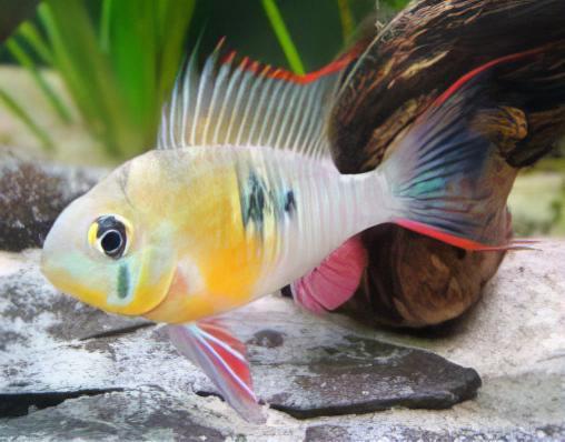 The Bolivian Ram is a rather docile species by cichlid standards. It is not however recommended for all types of community aquariums. This is not due to its aggression. It will occasionally charge at other fish but will rarely bite or attack. It is more of a scare tactic. The reason it doesn’t do well in most community aquariums is because it is a poor competitor when feeding. So, when housed with more active fish, it will get outcompeted and can starve as a result. Fishes similar to it that don’t go after food aggressively are well suited to community life with the Bolivian Ram. It is a social cichlid and does well in groups of about 6-8 of its own kind. The group must have a mixture of males and females. They generally form breeding pairs and stay faithful to their partners.