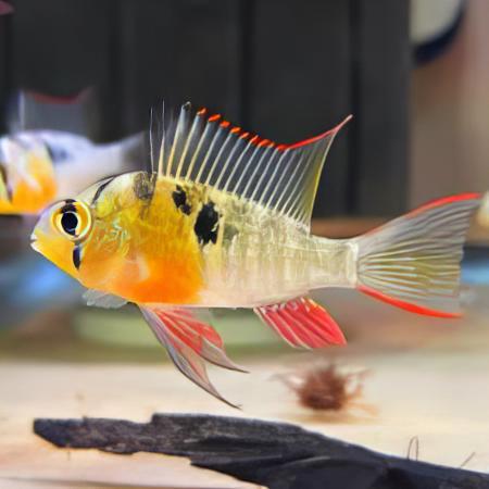 The Bolivian Ram is a rather gregarious species with a unique swimming style where it will dart at high speeds before instantly coming to a stop. They are fun to watch and relatively easy to care for.